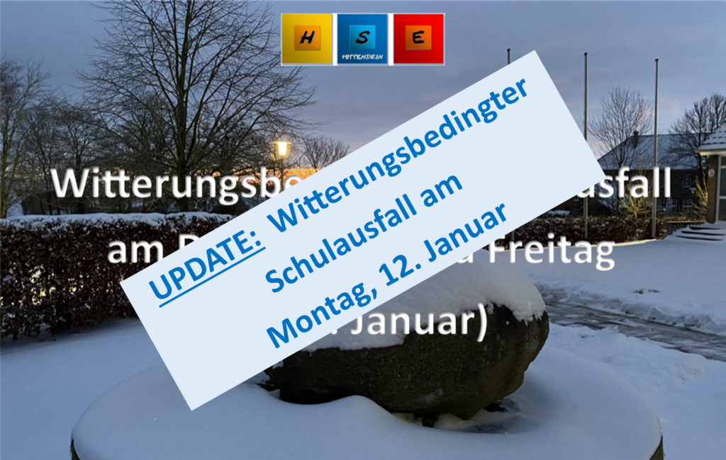 Angesichts der aktuellen und der vorhergesagten Wetterbedingungen fällt am Montag, den 12. Januar der Unterricht an allen allgemeinbildenden Schulen im Landkreis Emsland aus. Weitere Informationen erhalten alle Eltern und Erziehungsberechtigte per Elternbrief über unser Schulnetzwerk IServ.