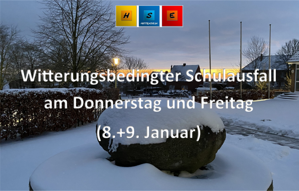 Angesichts der aktuellen und der vorhergesagten Wetterbedingungen fällt am Donnerstag und Freitag (8. und 9. Januar 2026) der Unterricht an allen allgemeinbildenden Schulen im Landkreis Emsland aus. Weitere Informationen erhalten alle Eltern und Erziehungsberechtigte per Elternbrief über unser Schulnetzwerk IServ.