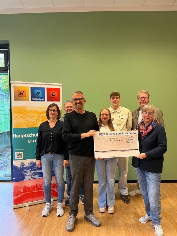 Insgesamt erliefen die Schülerinnen und Schüler der HSE mit bemerkenswerter Anstrengungsbereitschaft eine Summe von etwas mehr als 12500 €. Schulleiterin Christel Schnieder ist stolz: „Wir spenden 5000€ der Summe an das Hospiz-Team Abendstern e.V., das schwerkranke Kinder, Jugendliche und junge Erwachsene im Raum Salzbergen und Emsbüren unterstützt. Von dem anderen Teil soll unsere Schulgemeinschaft profitieren – durch geplante Projekte zur Schulhofgestaltung und besondere Aktionen im Schulalltag.
