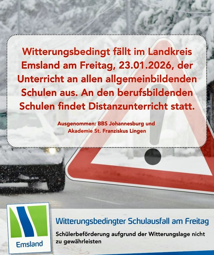 Witterungsbedingter Schulausfall im Landkreis Emsland am 23. Januar